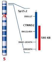 De oorzaak is het ontbreken van een stukje van de korte arm van chromosoom 5 (deletie